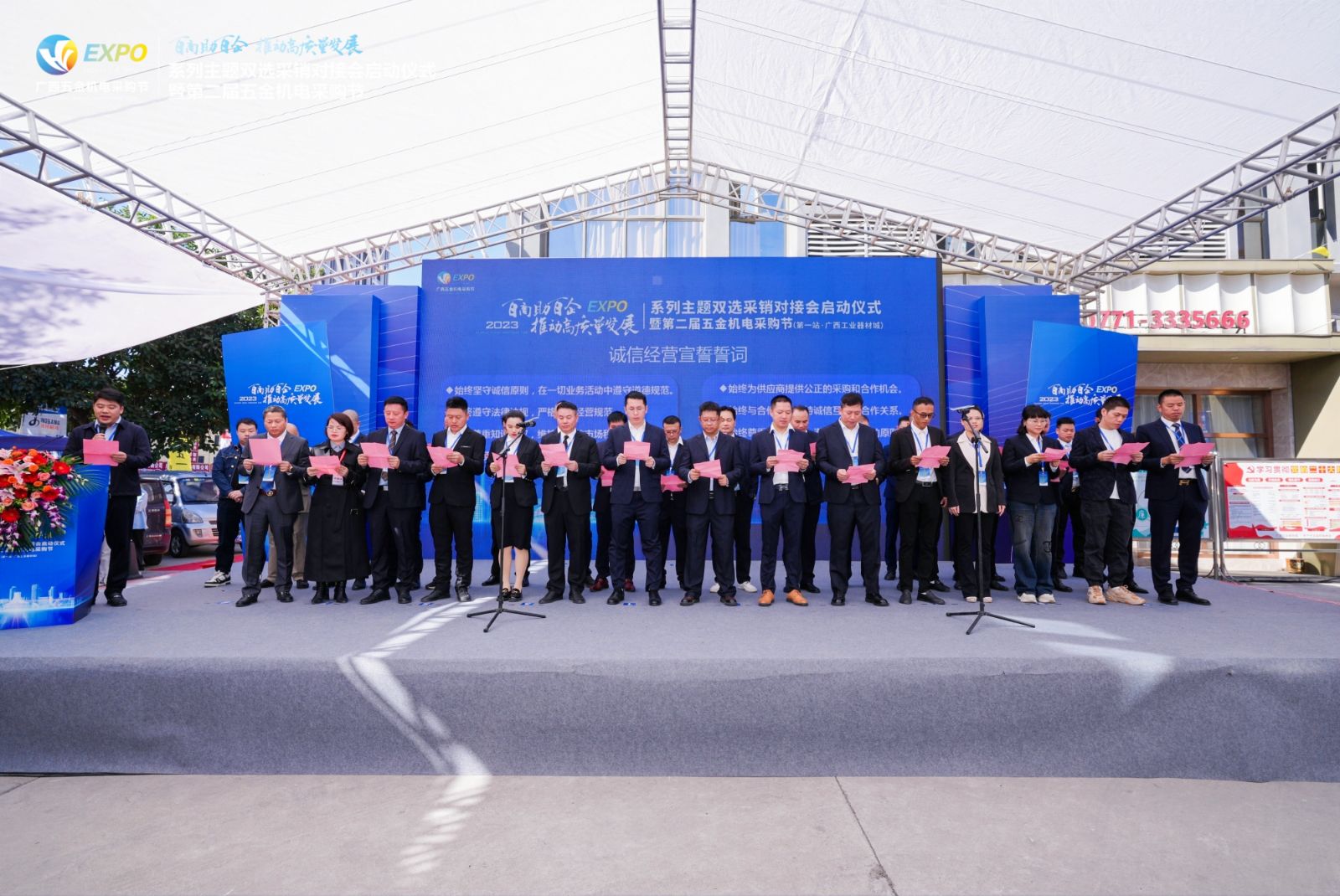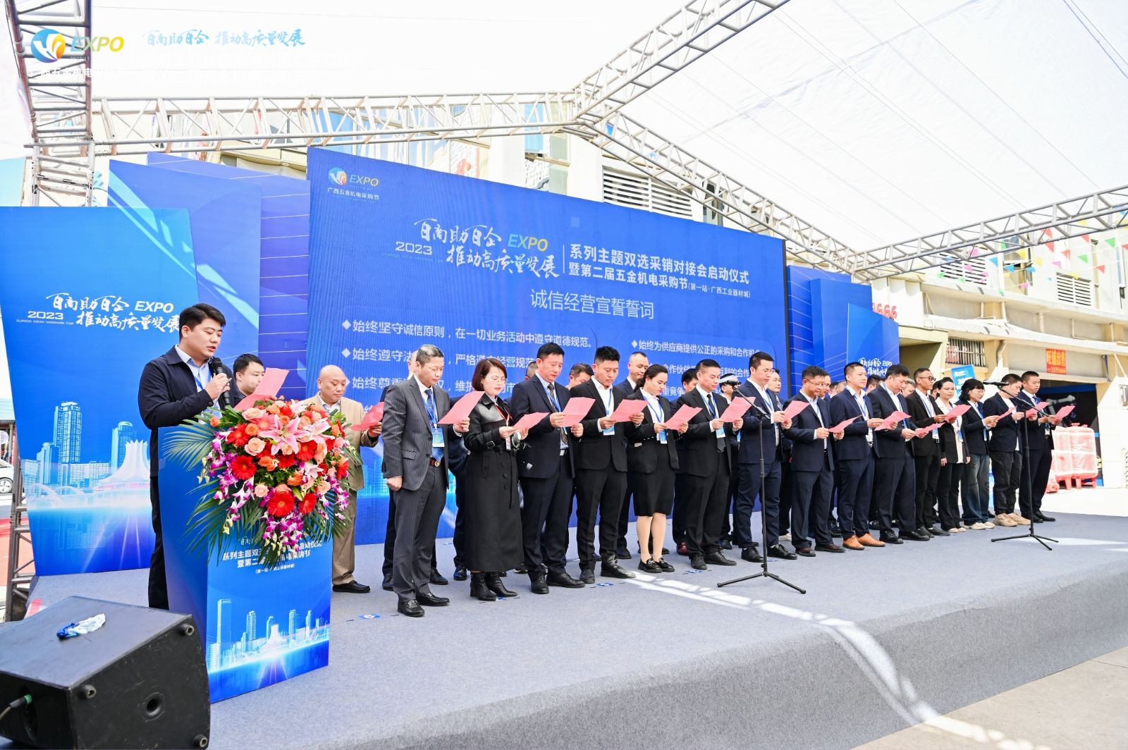 在市場經(jīng)濟的大潮中,誠信經(jīng)營成為企業(yè)穩(wěn)步發(fā)展的關(guān)鍵因素。在11月18日南寧市工商聯(lián)總商會主辦的首屆“百商助百企·推動高質(zhì)量發(fā)展”系列雙選采銷對接會啟動儀式暨第二屆五金機電采購節(jié)上,廣西國塑管業(yè)集團有限公司董事長黃偉斌帶領(lǐng)百家企業(yè)負(fù)責(zé)人宣讀誠信經(jīng)營宣誓誓詞,彰顯了企業(yè)對誠信經(jīng)營的重視和決心。